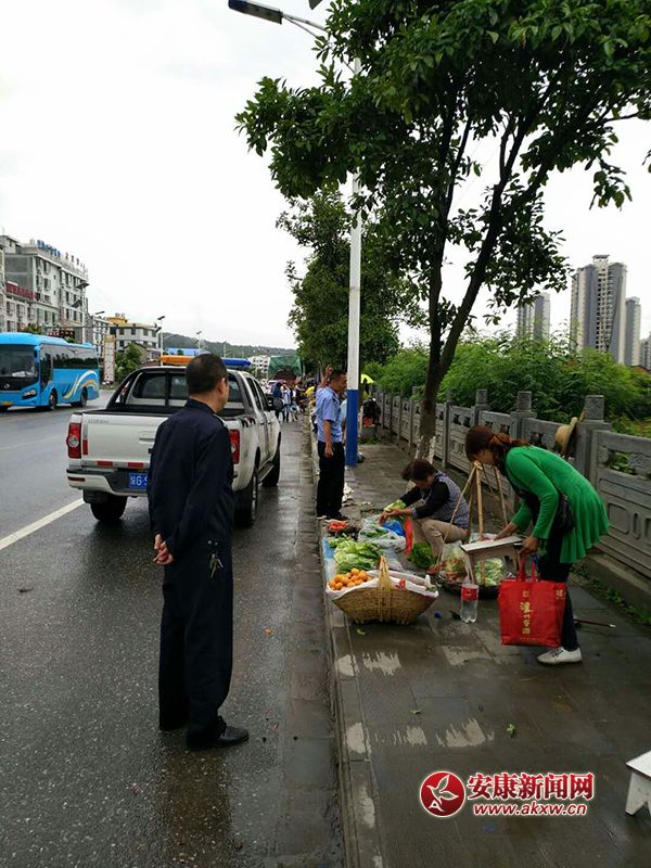 執(zhí)法人員冒雨清理南環(huán)快干,南環(huán)東路,香溪路等處流動經(jīng)營、馬路市場…