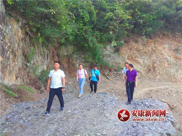安康療養院、區供銷社幫扶干部與二郎村干部至二郎村馬家杷硬化路段實地查勘。