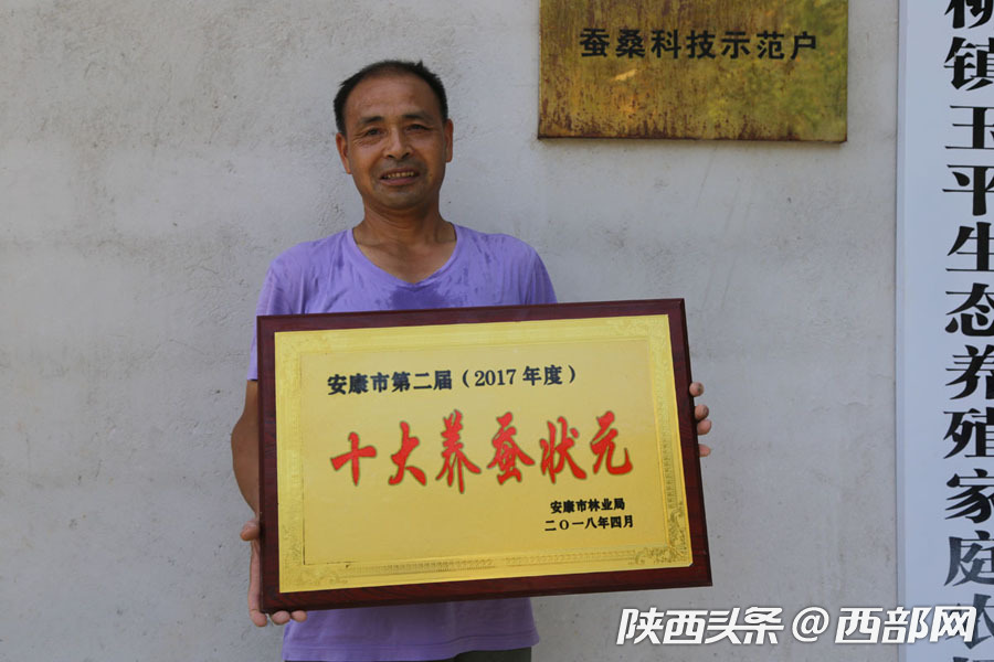 前不久,劉玉平的家庭農場獲得了20000元獎補資金,讓他喜出望外的是,他還獲得了安康市2017年“十大養蠶狀元”稱號,獎金5000元。拿到狀元獎牌的劉玉平笑得合不攏嘴。“劉狀元”也成了村里村外對他的新稱呼。RHQ安康新聞網