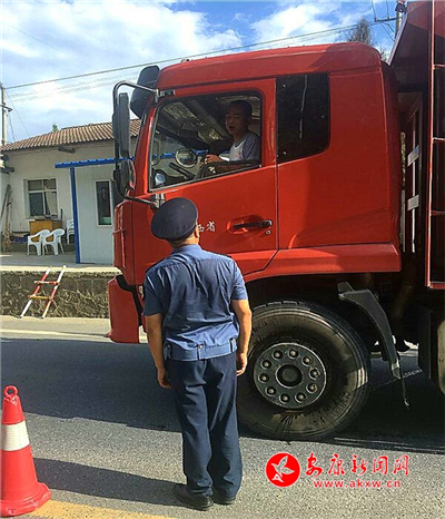 烈日下,一輛車牌號為陜G22**5的四軸重型貨運卡車,在執(zhí)法人員尹明杰有條不紊的引導(dǎo)下,緩緩駛向便攜稱重設(shè)備。身著反光背心的尹明杰,面龐曬得發(fā)紅,汗水順著他的臉頰往下滾。“超重1.68噸……”活動板房窗口,治超二班班長劉浩瀚手持檢測設(shè)備探出頭來喊道,并開具超載情況告知單請駕駛員簽字確認。
