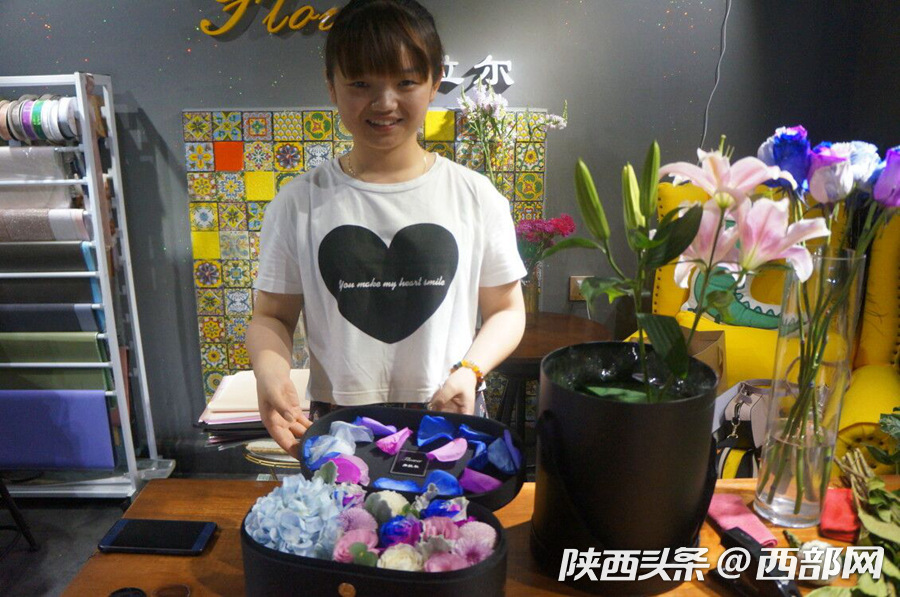 老板展示她最喜歡的厄爾多瓜玫瑰。