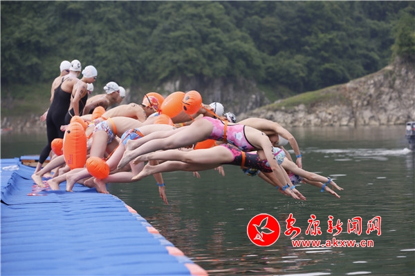 本網訊(記者 陸青波 羅超 實習記者 劉淵)7月3日上午,十四運會馬拉松游泳項目測試賽暨陜西省馬拉松游泳公開賽,在風景如畫的安康瀛湖風景區翠屏島南側公開水域順利舉行。