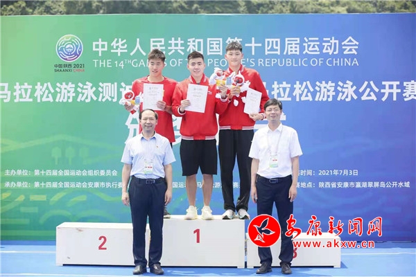 上午8時許運動員從駐地到達瀛湖,嚴格按照檢錄程序進入比賽場地。上午9時,在省組委會體展中心激情四射的現場解說中,隨著一聲哨響,來自陜西浩沙隊的8名專業選手和安康市的12名業余選手精神抖擻縱身躍入水中,平靜的江面瞬間浪花飛濺。只見游泳健兒們一個個你追我趕、奮勇爭先,充分展示著健美的身軀、頑強的意志。經過120多分鐘的激烈角逐,劉魯鵬、屈芳分獲專業組10公里馬拉松游泳男女第一名,周辰驍、王子一分獲公開組3公里男女第一名。