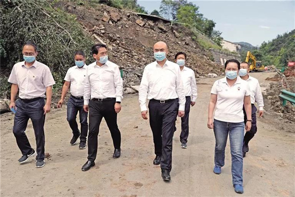 受多輪強(qiáng)降雨影響,紫陽縣受災(zāi)嚴(yán)重。劉國中來到高橋鎮(zhèn)蘭草村,了解雨情汛情,察看滑坡點(diǎn)和倒塌房屋,詳細(xì)詢問防汛預(yù)警、撤離組織、受災(zāi)人數(shù)等情況,要求切實(shí)搞好受災(zāi)群眾安置工作,同時(shí)加強(qiáng)地質(zhì)災(zāi)害監(jiān)測(cè),一旦遇到險(xiǎn)情,堅(jiān)決、及時(shí)、徹底、一次到位地把群眾轉(zhuǎn)移到安全地帶,確保不發(fā)生人員傷亡。村民劉際富家的房屋在暴雨中倒塌,鎮(zhèn)村干部提前組織了轉(zhuǎn)移,最近借住在女兒女婿家中,劉國中詳細(xì)詢問他一家人的生活情況,勉勵(lì)他們堅(jiān)定信心,表示各級(jí)黨委政府將和受災(zāi)群眾一道努力、共渡難關(guān)。