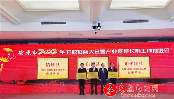 會議通報了安康市經濟社會發展、重點產業鏈鏈長制推進、重點產業方向、營商環境及2022年開放招商重點工作,表彰了2021年招商引資工作先進單位和先進個人。李華楓等16名同志聘為安康市開放發展高級顧問。