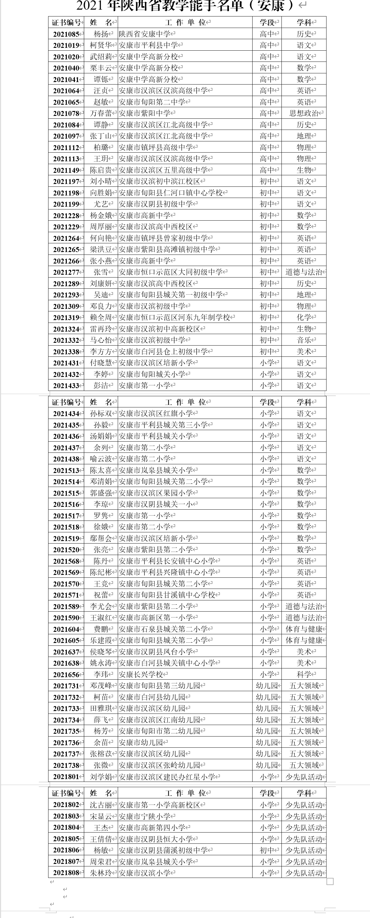 快訊 | 安康72名!2021年陜西省教學能手名單公布