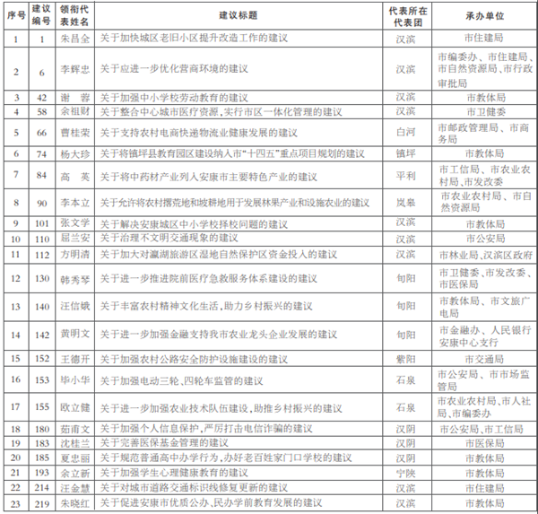 市四屆人大七次會議優秀代表建議一覽表