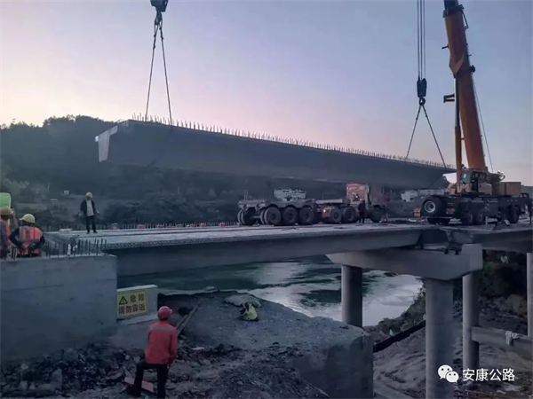 該橋自2021年10月開工以來,各建設(shè)單位克服新冠疫情和施工外部環(huán)境影響,精心組織施工,合理調(diào)配人員,加大資金投入,歷時7個月于5月1日上午,各項(xiàng)前期及準(zhǔn)備工作就緒,橋梁進(jìn)入安裝合龍階段,在現(xiàn)場全體技術(shù)、管理人員的緊密配合下,經(jīng)過連續(xù)兩天的吊裝施工后,16片20米箱梁成功安裝到位,順利實(shí)現(xiàn)合龍。