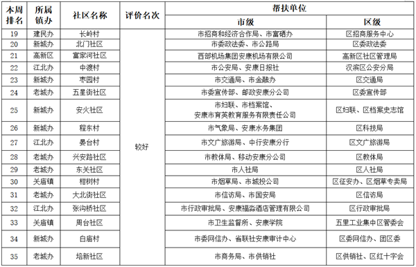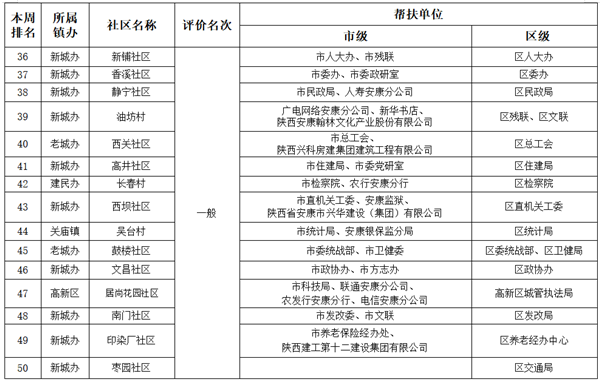 附件:市、區兩級部門、單位幫扶社區(村)周排名情況一覽表FFk安康新聞網