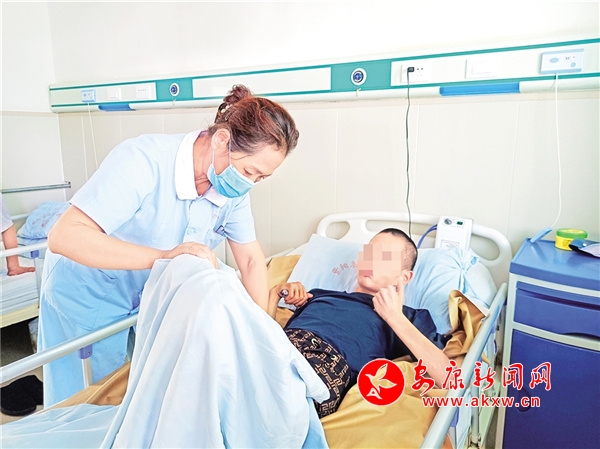 身材敦實的中年漢子魏龍江,動作敏捷而又輕柔地擠到對面去,打開老人床上那折疊成方塊的被子,又揭開床單、抽出墊褥。大家在他的展示中,看不到臟污,聞不到尿騷與臭氣。接著,他又把輪騎轉了一圈,讓我們真切地看到:老人的皮膚是健康的,衣服是干凈的,身上也沒有什么異味兒。