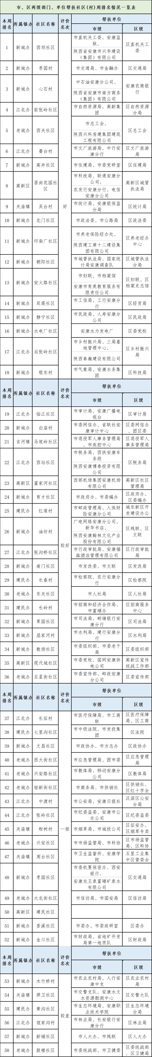 附件:市、區(qū)兩級(jí)部門、單位幫扶社區(qū)(村)周排名情況一覽表