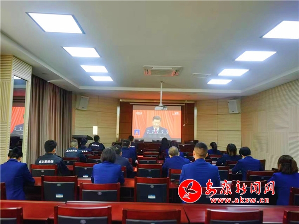 安康市紀委監委機關組織黨員干部集中收看中國共產黨第二十次全國代表大會開幕會直播。(通訊員 周呈)