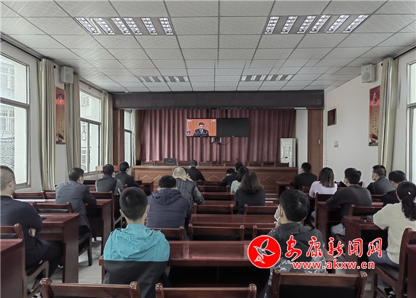 △旬陽市司法局組織黨員干部收聽收看中國共產黨第二十次全國代表大會開幕會直播。(通訊員 魯緒琴 )