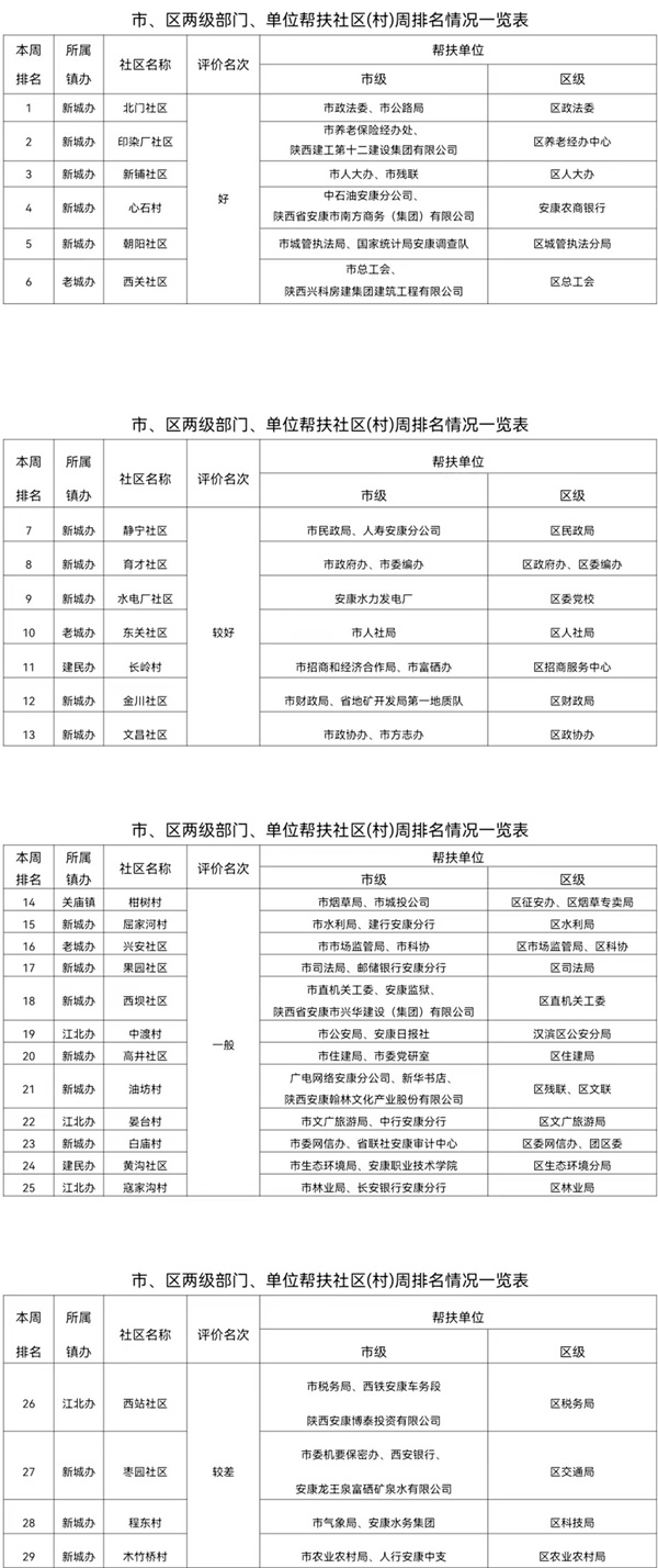 附件:市、區兩級部門幫扶社區(村)周排名情況一覽表