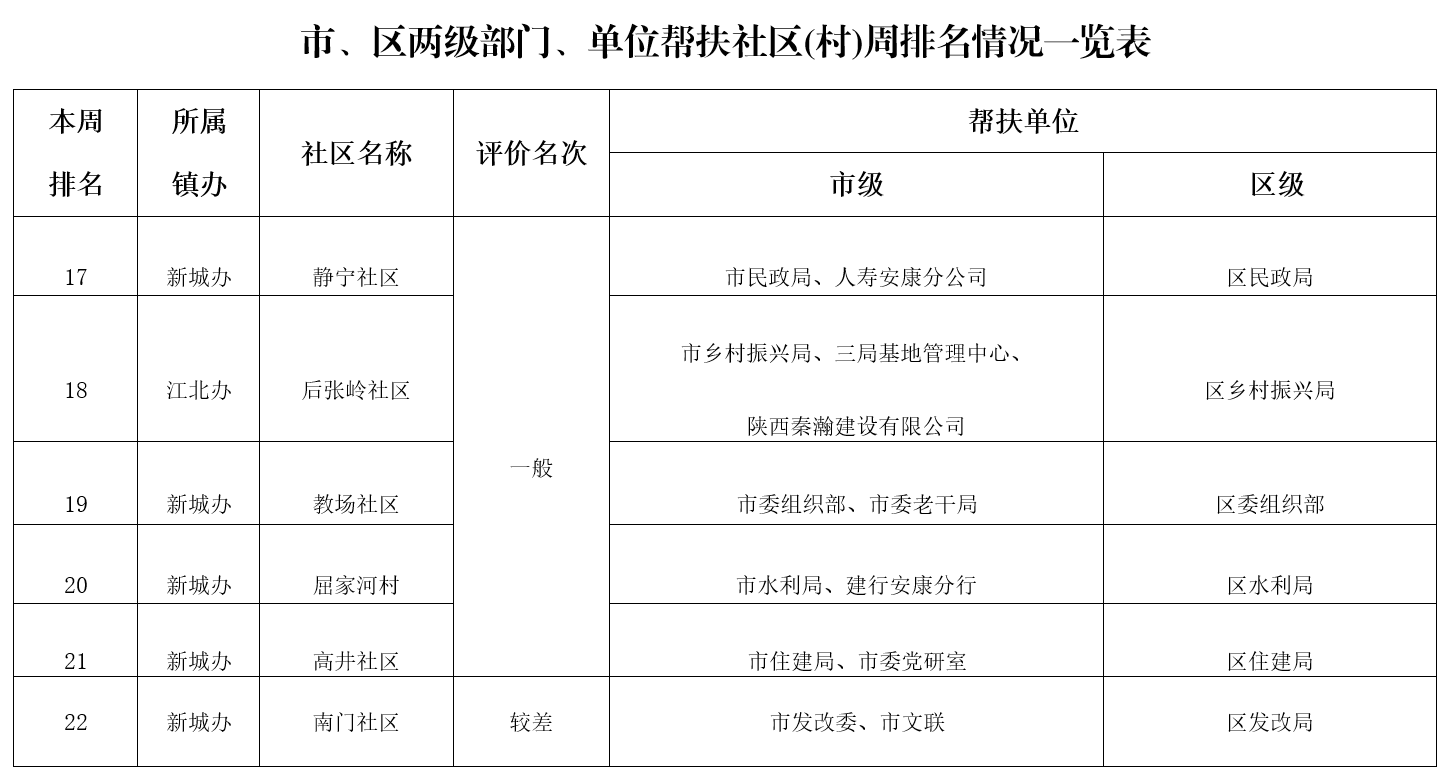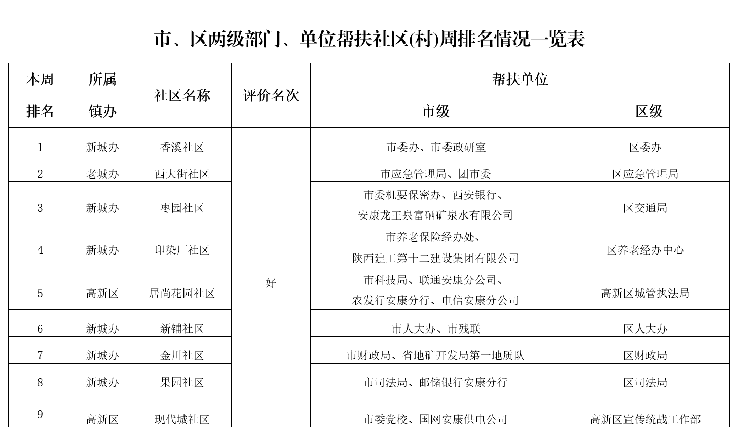 附件:市、區兩級部門幫扶社區(村)周排名情況一覽表