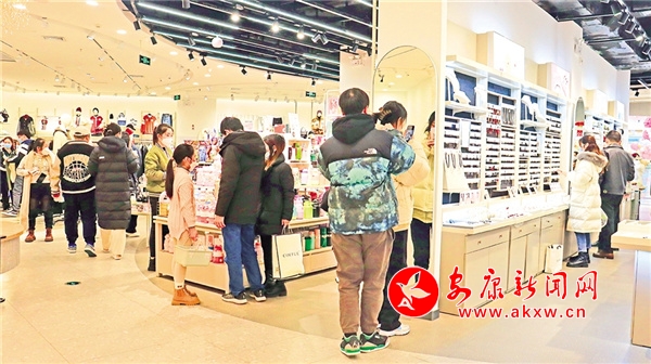 元旦期間,安康大型綜合商超內人來人往。記者 羅偉 攝
