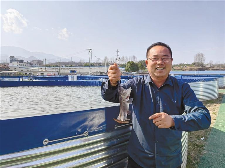“2021年,我們村和鄰村的一家企業(yè)聯(lián)合發(fā)展?jié)O業(yè),我將自家的1.4畝閑置地流轉(zhuǎn)給軍壩村水產(chǎn)養(yǎng)殖基地,不僅每年有1000元的土地流轉(zhuǎn)收入,而且還被該基地聘為工作人員,月工資2500元。”謝祖勝說,“我管護的魚塘里有1萬尾魚,我每天要給魚喂食4次,還要觀察魚是否受傷或有寄生蟲等。如果管護得好,公司每月再獎勵我500元。”