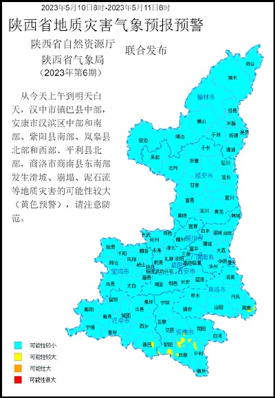 陜西省自然資源廳與陜西省氣象局聯(lián)合發(fā)布地質(zhì)災(zāi)害氣象風(fēng)險黃色預(yù)警[ III 級/較重]預(yù)警