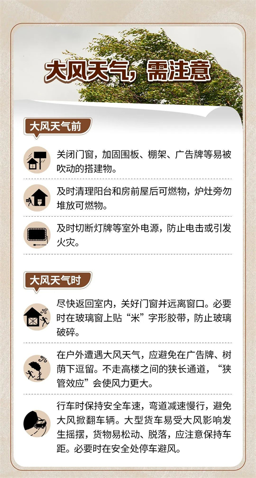 請相關部門提前做好短時暴雨、雷暴大風和冰雹等強對流天氣的防御工作;公眾在發生雷雨大風時減少戶外活動,遠離棚架廣告牌等搭建物;注意短時暴雨引發的山洪、滑坡、泥石流等災害。