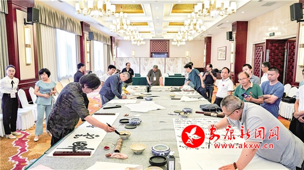 6月11日下午,來自上海的書法藝術家們與安康、漢陰本地書法家開展了書法交流筆會,書法家們懷著對沈尹默先生的崇敬之情,一同揮毫潑墨、暢意抒懷,一幅幅主題鮮明、筆精墨妙的書法作品躍然紙上。創作之余,大家相互點評書法作品,并對書法創作藝術進行交流,進一步增強了漢陰與上海的文化交流與合作。
