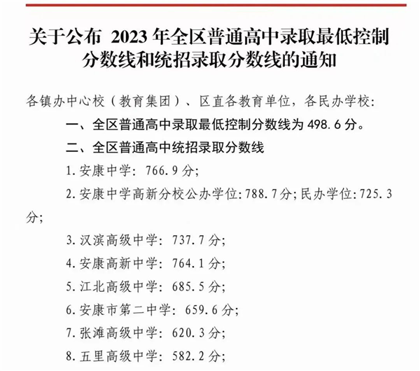 《關于公布2023年全區普通高中錄取最低控制分數線和統招錄取分數線的通知》