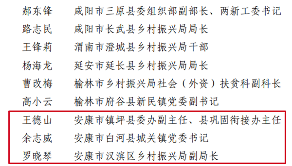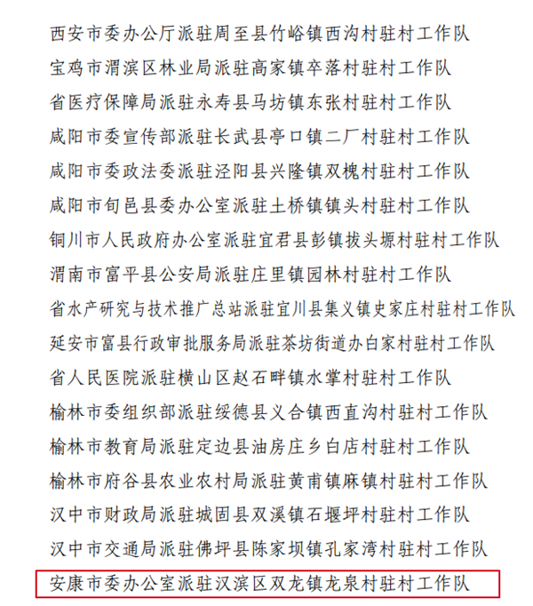 2021年以來,全省各級各相關單位用情用力、持續開展定點幫扶和駐村幫扶工作,為全省鞏固拓展脫貧攻堅成果上臺階、鄉村振興見實效作出了突出貢獻,涌現出了一大批先進集體和先進個人。為表彰先進、樹立典型,進一步營造氛圍、凝聚合力,激發各級各相關單位參與定點幫扶、駐村幫扶工作的積極性、主動性和創造性,省鞏固拓展脫貧攻堅成果同鄉村振興有效銜接領導小組辦公室決定,授予陜煤集團助力漢陰鄉村振興工作站等50個單位“陜西省定點幫扶工作先進集體”榮譽稱號,授予李鵬等100名同志“陜西省定點幫扶工作先進個人”榮譽稱號。