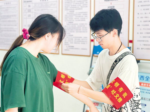 安火路社區黨委書記夏成紅告訴記者,社區成立于2001年,由原來金川居委會改制而成,人口密度大,老年人占比多。目前只有十幾名社區工作人員,工作任務繁重。轄區返鄉大學生在假期主動來到社區報到,要求參與志愿服務活動,當交通文明勸導員、“文明有我 ‘痰’吐文雅”糾治員、社區“鄰里之家”值班員。“有了這些新生力量的參與,不僅為社區干部減輕了工作負擔,也在轄區傳遞了正能量,讓志愿精神更好地傳承下去。”夏成紅說。