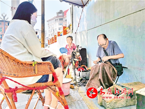“我是這兒的常客,主要是趙師傅活干得細致,修補出來的鞋子比較牢固,收費也是有些地方的一半。而且很熱心,有時老人、孩子的其他東西需要維修,拿過來他總能想方設法幫忙修理。”領著孩子來此修鞋的趙女士說。