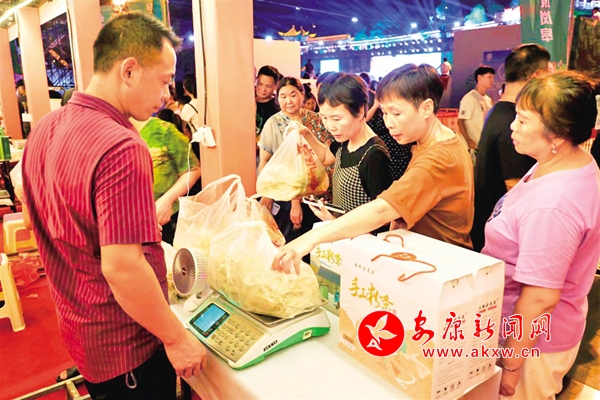 除了獨具特色的文旅活動,充滿地域特色的農副產品展銷無疑讓村BA多了一份獨特的“韻味”。“大家好,歡迎來到我們的直播間,今天要給大家介紹的是嵐皋的一款非常有名的產品神仙豆腐……。”助農直播間也如賽場一樣激情高昂,兩位主播正在賣力地向廣大網友介紹著嵐皋農特產品。