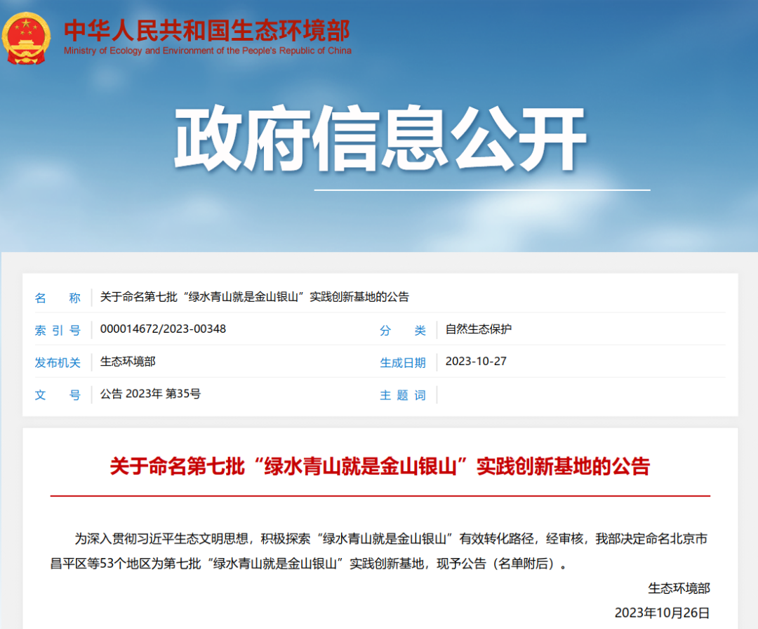 同日,生態環境部發布關于命名第七批“綠水青山就是金山銀山”實踐創新基地的公告,石泉縣被評為第七批“綠水青山就是金山銀山”實踐創新基地。