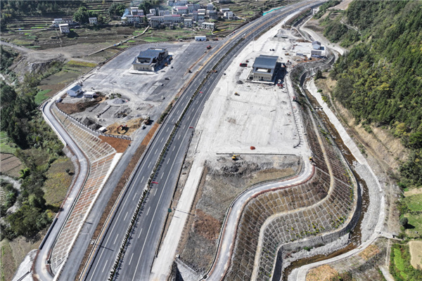 巫鎮高速公路中壩互通施工現場(11月1日攝,無人機照片)。新華社記者 邵瑞 攝