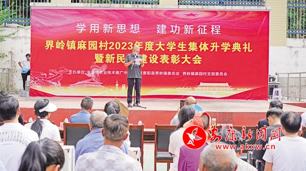 界嶺鎮(zhèn)麻園村2023年度集中升學(xué)禮暨新民風建設(shè)表彰活動現(xiàn)場——圖為學(xué)生家長公開承諾不辦“無事酒” 陳楚庚 攝