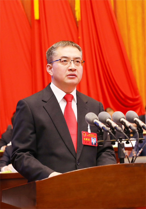 △ 市長王浩代表市人民政府作工作報告。記者 魏濤 攝