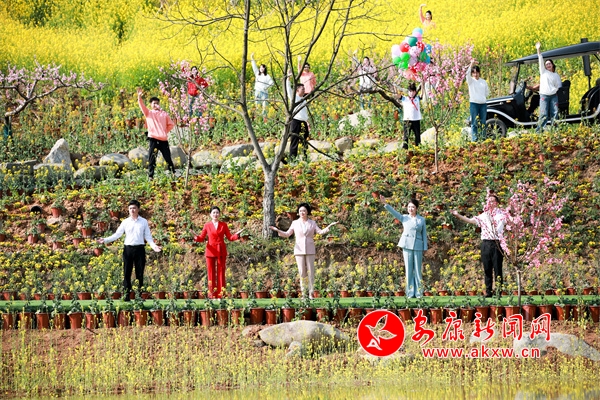 春日的水田溝村生機勃發,漫山的油菜花在暖陽下爭相怒放,山坡下是一汪清澈的湖水。活動依山就勢、水陸并用,將演員、舞臺、道具與水田溝村地形地貌完美融合,營造出“人在畫中游,畫在景中走”的和美景象。隨著原創歌曲《水田溝的油菜花》悠揚動聽的歌聲從湖面的小船傳來,活動正式拉開帷幕,獨唱《問春》、情景詩朗誦《母親河》、歌伴舞《醉美桃花源》、情景劇《桃花源記》、漢劇歌舞《喬木花》、原創歌曲《阿依娜》、歌伴舞《幸福安康》等精彩節目相繼上演,悠揚的歌聲、曼妙的舞姿在湖上、在油菜花田、在蜿蜒的山路漸次呈現,將現場觀眾和游客迅速帶入安康桃花源美麗夢幻的油菜花海世界,沉浸式感受安康高新區產城綠融合發展和鄉村振興的顯著成效。