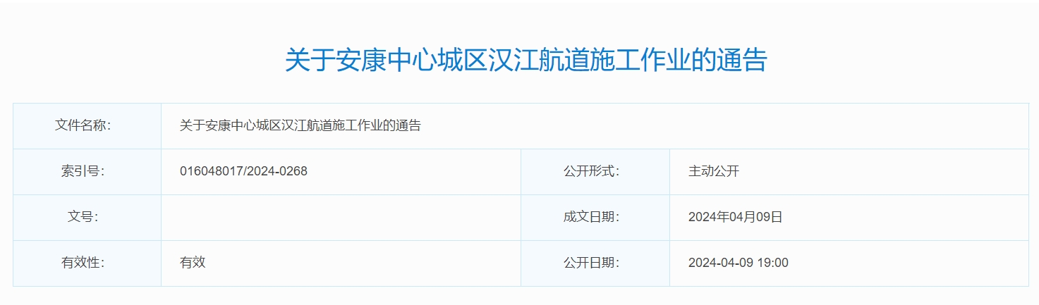 按照市委、市政府“建設漢江生態經濟帶重要節點城市”戰略部署,為加快漢江高等級航道建設,恢復漢江“黃金水道”航運,繁榮中心城區漢江夜游經濟,根據《安康市漢江航運發展規劃(2023-2035)》,安康中心城區漢江航道擬于近期進行維護工程施工作業,現將有關事項通告如下: