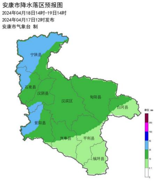 4月18日14時(shí)-19日14時(shí)安康市降水落區(qū)預(yù)報(bào)圖