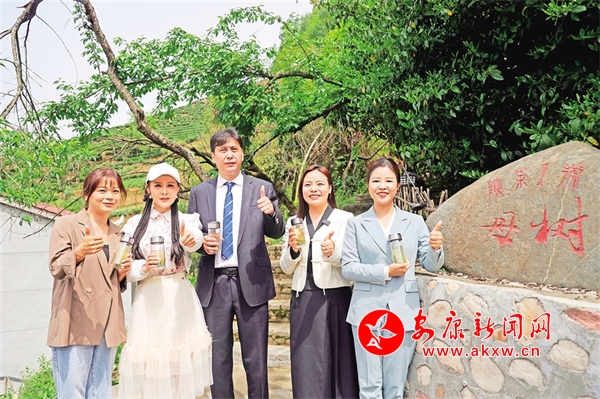 漢濱區(qū)區(qū)長(zhǎng)吳大林(中)攜網(wǎng)絡(luò)達(dá)人為“陜茶一號(hào)”代言