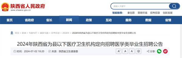 在陜西省人民政府門戶網(www.shaanxi.gov.cn)、陜西省人力資源和社會保障廳網(rst.shaanxi.gov.cn)、陜西省衛生健康委員會網(sxwjw.shaanxi.gov.cn)、陜西人事考試網(www.sxrsks.cn)發布公告。