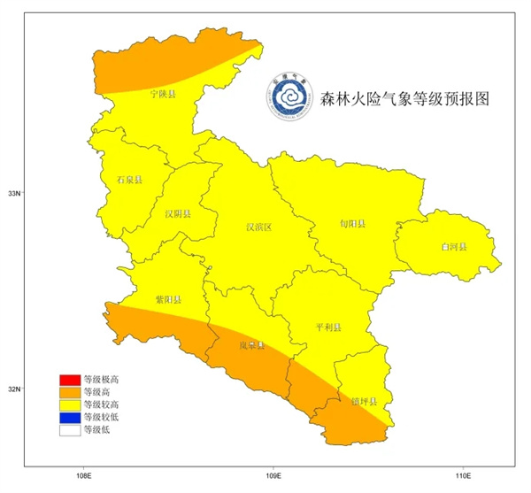 2025年2月4日(大年初七)安康市森林火險氣象風險等級預報