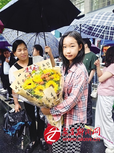 fed安康新聞網 6月7日上午,安康中學考點外妹妹正手捧鮮花等待完成第一場考試的姐姐。 鄭時根 攝fed安康新聞網