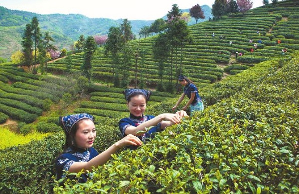茶園里耕作的農民,少不了用民歌來解悶。 “三月三哪,上茶山喲依兒呦,姐妹采茶呀心喜歡哪,喲依兒喲,山山飄清香,處處好茶園”“姐家門前一樹槐,手把槐樹望郎……