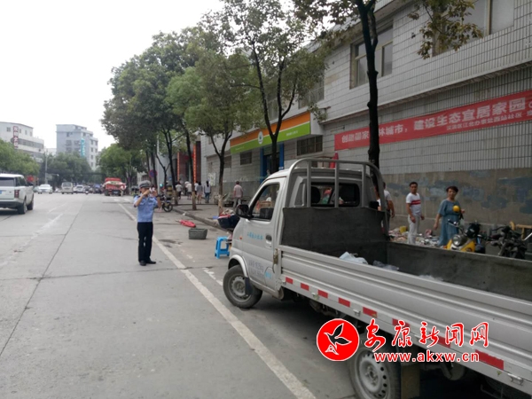 江北中隊在江北大道鐵路分局九華段清理整治水果攤點攤位車……