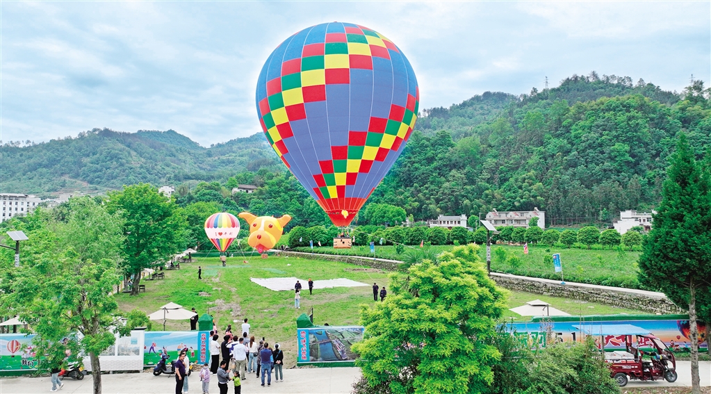 “五一”小長假期間,平利縣策劃了系列文旅活動,吸引游客觀光游玩。圖為5月2日,游客在平利縣城關鎮龍頭村熱氣球基地體驗熱氣球。沈奕君 攝“五一”小長假期間,……