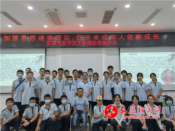 市圖書館為充分發揮社會教育職能,培育未成年人社會主義核心價值觀,促進其身心健康成長,2017年8月安康市圖書館成立了王庭德書友會,該團體是以王庭德自述其身殘志堅的勵志故事和閱讀分享勵志書籍為主題,主要面向全市未成年人持續開展志愿服務活動。今年上半年,王庭德走進漢濱初中高新分校、安康中學高新分校、漢濱區第一小學、西關小學等,開展勵志講座20多場,暑假期間安康市漢濱初中學生來到安康市圖書館,聆聽王庭德勵志故事,激勵同學們心懷夢想,勤奮學習,不怕困難,自強自立,做有志氣、有理想、有毅力、懂得感恩回報社會的好少年。