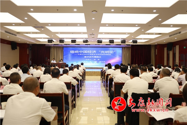 宣講特邀市委黨校哲學文史教研室主任、教授陳菊以安康市2023年成就宣傳和形勢政策教育等內(nèi)容為主題,宣講了黨的二十大精神和習近平總書記來陜考察重要指示精神,及中、省一系列經(jīng)濟發(fā)展舉措和我市出臺的穩(wěn)定經(jīng)濟增長的一攬子政策措施和重點任務,并結(jié)合新發(fā)展格局理論和安康發(fā)展實際,從新發(fā)展格局的戰(zhàn)略意義、內(nèi)在邏輯以及當前宏觀經(jīng)濟形勢等方面,向與會人員作專題講授。鼓勵參會企業(yè)搶抓發(fā)展機遇,全力以赴推進全市國資國企實現(xiàn)高質(zhì)量發(fā)展。