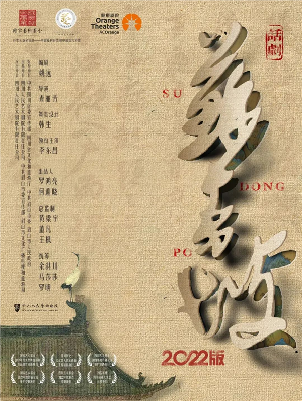 話劇《蘇東坡》在舞臺上突破了原有的戲劇框架,創造性地融入了“幫腔”與“司鼓”的川劇構成,更通過舞美與串場角色,構成了匠心獨具的藝術空間,在文本的時空性、戲劇傳統的融合性、人物塑造的獨特性以及戲劇本身的地域文化特性上完成了突破與超越。