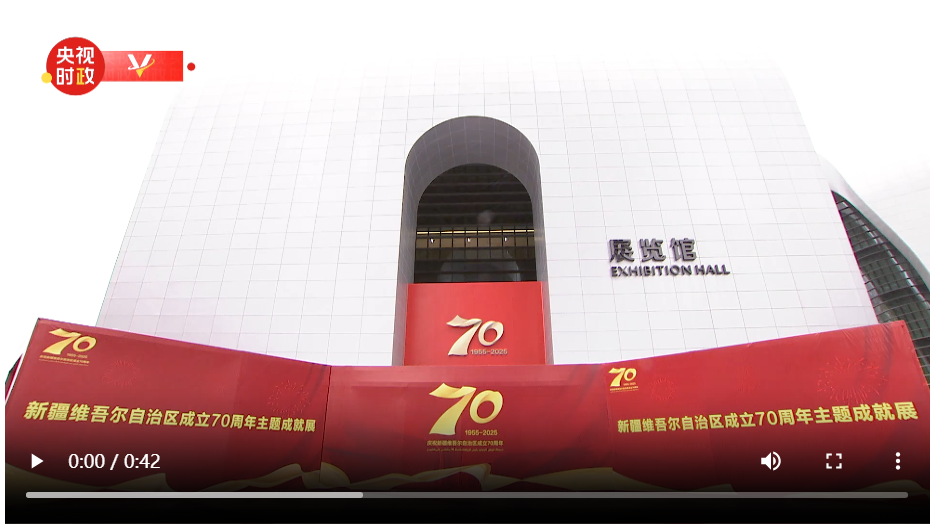 上午10時30分許,習(xí)近平等來到烏魯木齊文化中心展覽館,走進(jìn)展廳參觀成就展。展覽通過“萬方樂奏換新天”“潮涌天山展宏圖”“美麗新疆鑄輝煌”3個部分,全景展現(xiàn)了70年來在中國共產(chǎn)黨堅強(qiáng)領(lǐng)導(dǎo)下、在全國各地大力支援下,新疆各族人民團(tuán)結(jié)一心、艱苦奮斗、頑強(qiáng)拼搏取得的輝煌成就。