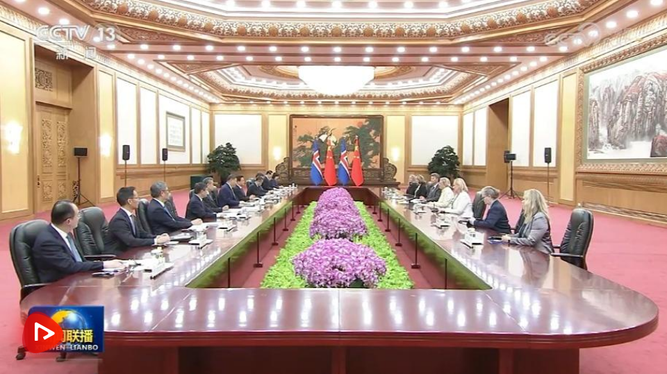 10月14日上午,國家主席習近平在北京人民大會堂會見來華出席全球婦女峰會的冰島總統托馬斯多蒂爾。jY9安康新聞網