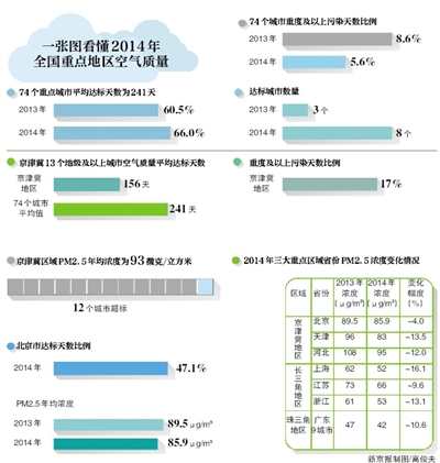 新京報(bào)訊 (記者金煜) 環(huán)保部昨日公布了去年重點(diǎn)區(qū)域和74個(gè)城市空氣質(zhì)量狀況。去年全國(guó)PM2.5濃度有了普遍下降,京津冀區(qū)域PM2.5年均濃度降到93微克/立方米,雖然……