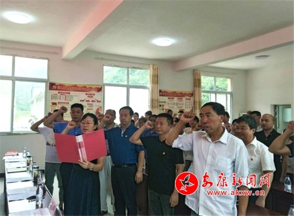 “我志愿加入中國共產黨,擁護黨的綱領,遵守黨的章程……”7月17日,在老莊溝村二樓會議室里,來自市中心血站的20多名黨員干部與老莊溝村全體黨員統一佩戴黨徽,整齊列隊,舉起右手,在黨旗下莊嚴宣誓,重溫入黨誓詞。